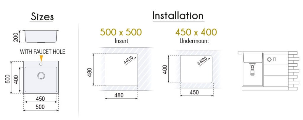 Possibility of assembly: undermount or insert.