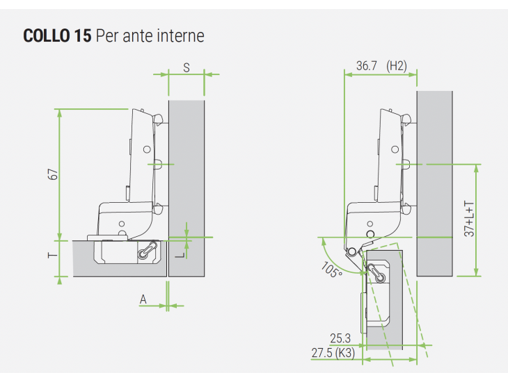 FGV 110′ Omnia L Soft-close Inset Hinge, Crank 15, Self-Tap