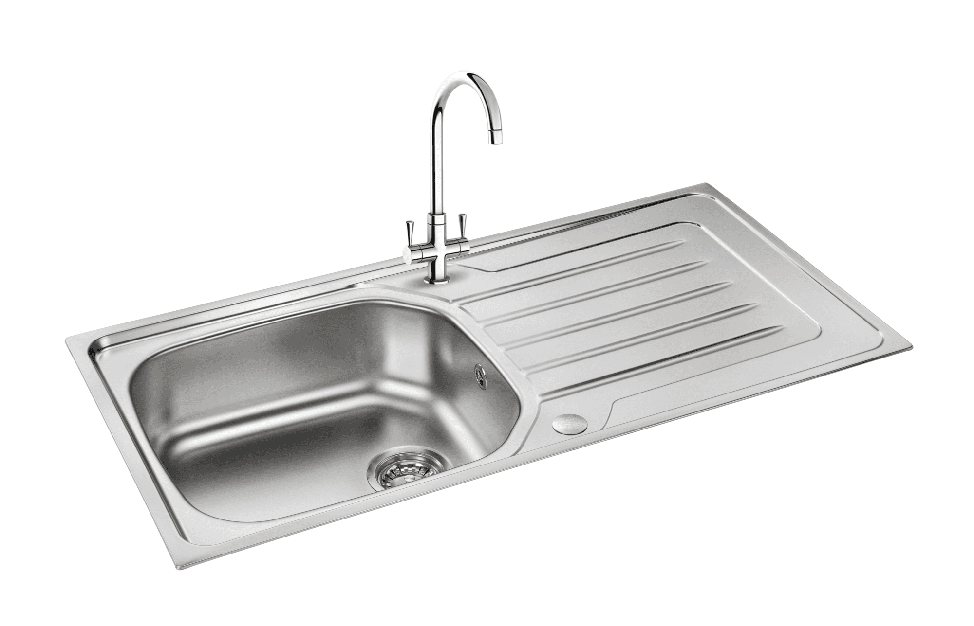 The Onda sink range offers excellent value for money, whilst combining good looks with high performance and durability. Shown with Henley Chrome tap.